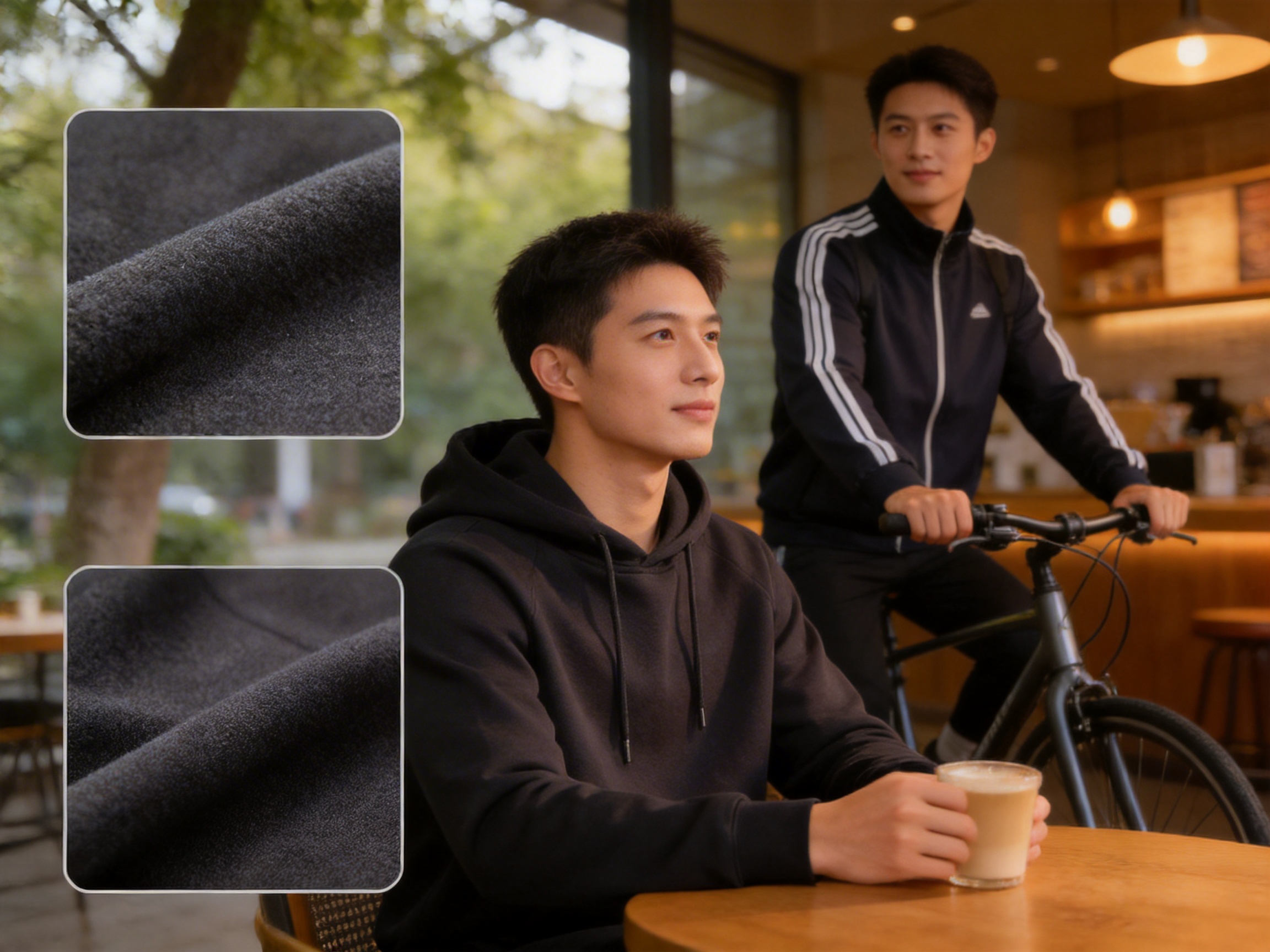 Tailored track jackets use the fabric’s slight structure to hold shape while remaining flexible—blending athletic and casual aesthetics.