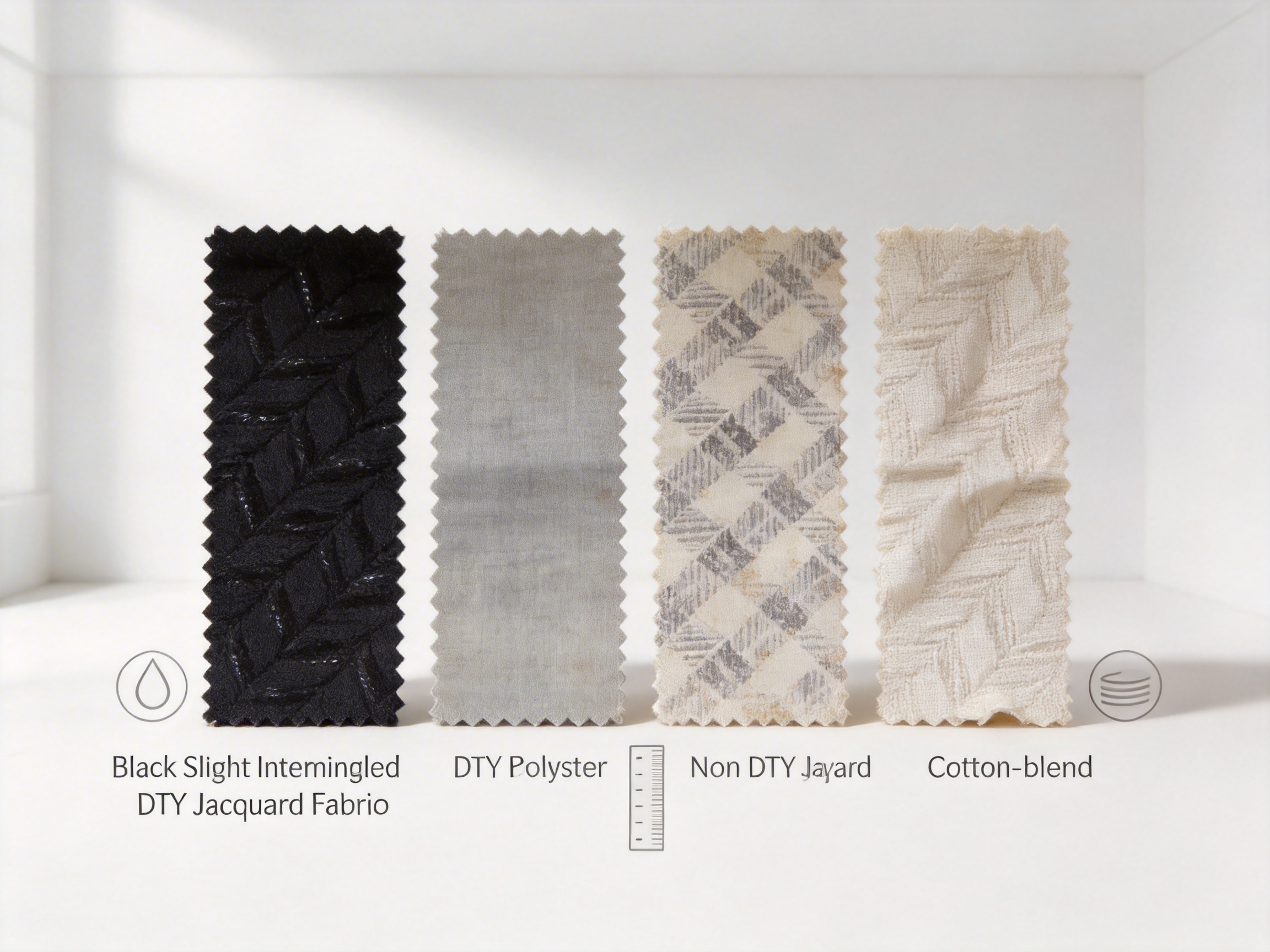 The Black Slight Intermingled DTY Jacquard Fabric stands out from conventional textiles due to its unique combination of features. To illustrate its competitive edge, let’s compare it to three common alternatives: plain dyed polyester fabric, non-DTY jacquard fabric, and cotton-blend jacquard fabric.