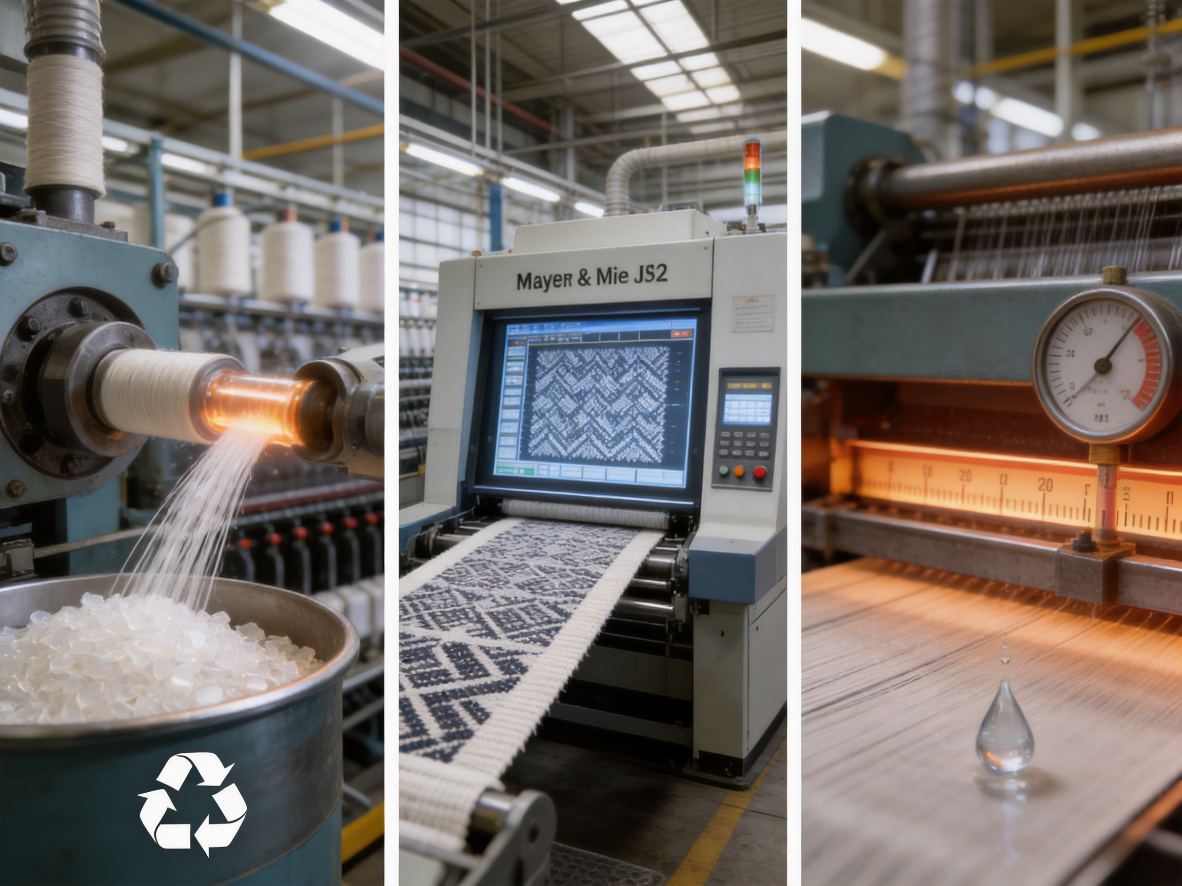- Extrusion: Polyester chips are melted at 280–300°C and extruded into continuous filaments (1.5 denier per filament, optimal for softness).