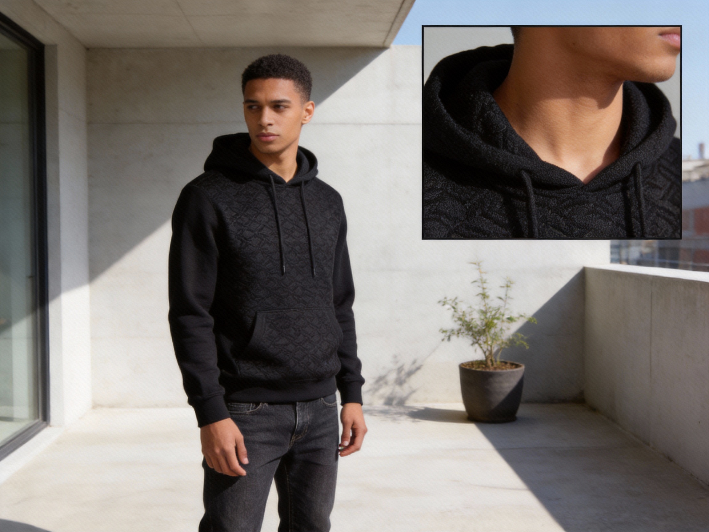 The mid-heavy weight (280 g/m²) is perfect for fall/winter. The cotton-like softness ensures comfort against the skin, while the subtle jacquard pattern adds luxury without loud logos. A European streetwear brand used this fabric for its 2023 winter hoodie line, which sold out in 2 weeks due to its soft feel and understated design. Customers praised it for being "warm but not bulky" and "stylish enough for both casual and semi-formal settings."