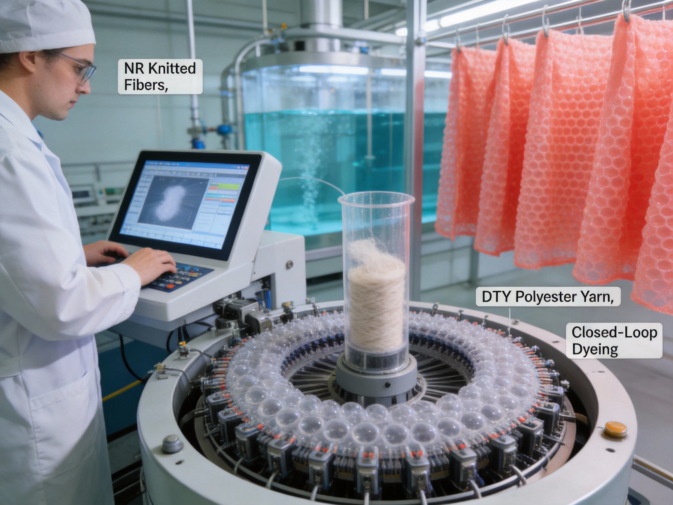 Bubble Fabric’s production begins with the selection of high-grade raw materials: - NR Knitted Fibers: Chosen for their elasticity, breathability, and softness. These fibers are sourced from sustainable rubber plantations to minimize environmental impact. - DTY Polyester Yarn: The producer manufactures its own DTY yarn, ensuring strict quality control over this critical component. DTY yarn adds strength, wrinkle resistance, and color retention to the fabric. The fibers are blended in precise ratios (typically 60% NR, 40% DTY polyester) to balance comfort and durability.