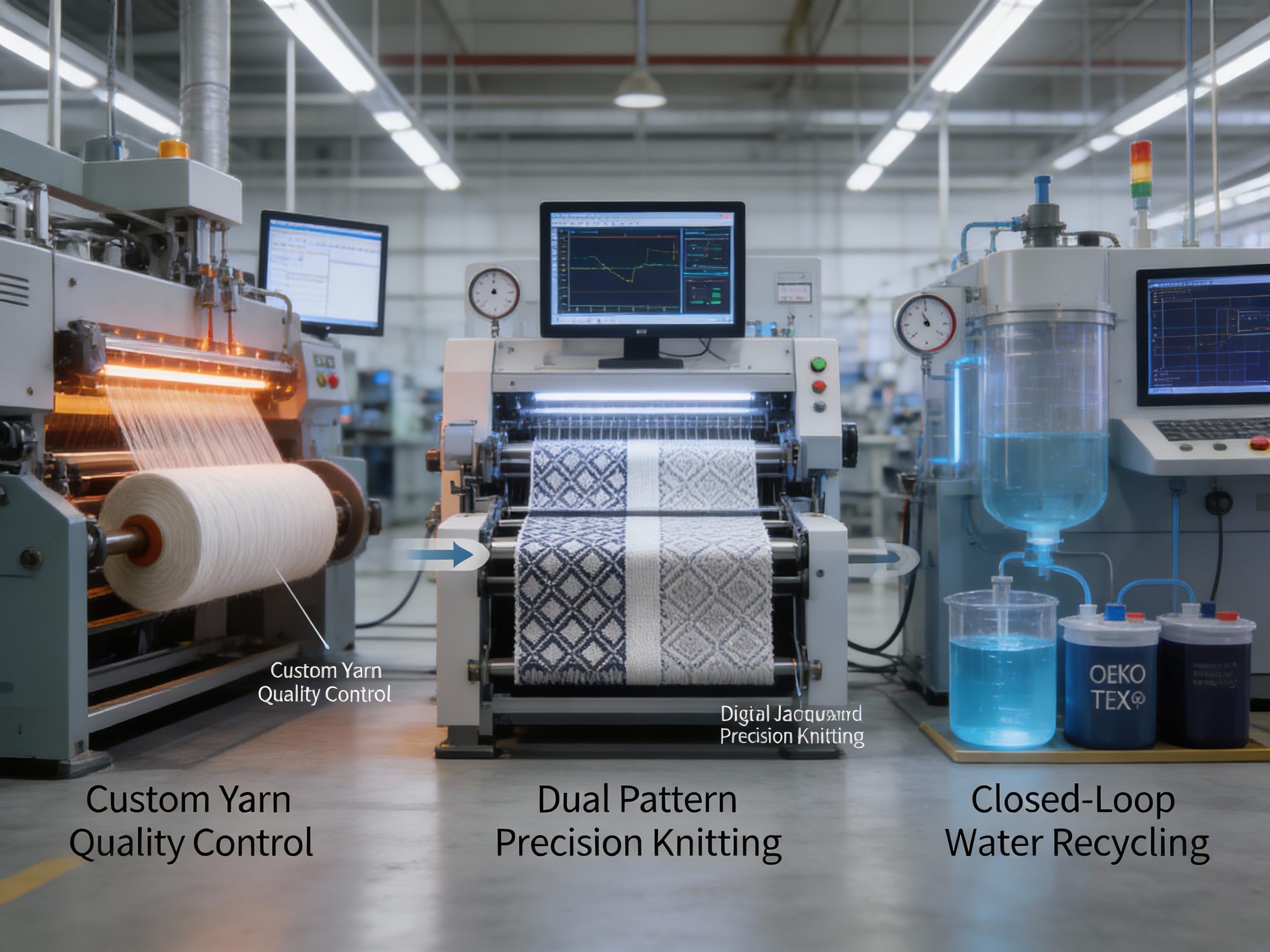 • Knitting inspection: Machines are monitored for tension and pattern accuracy.