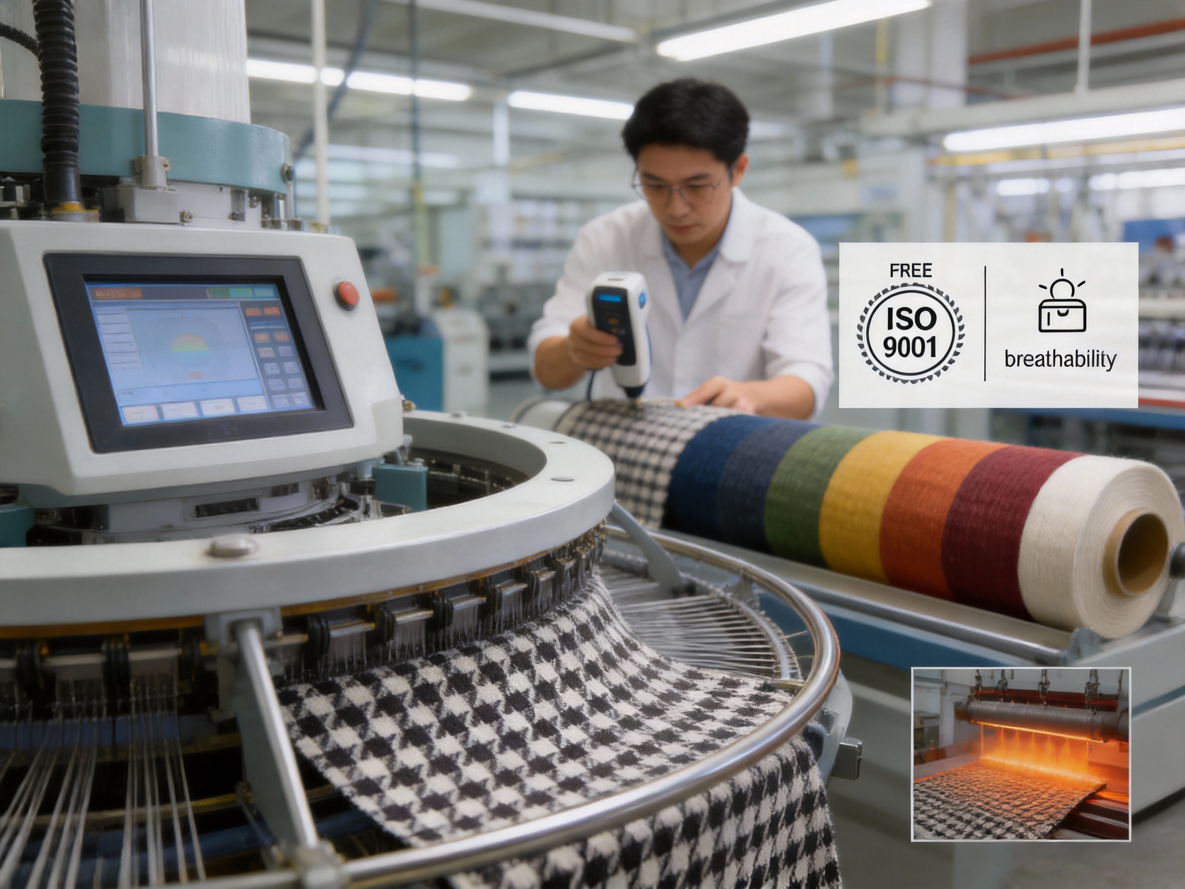 - Digital Pattern Alignment: The houndstooth pattern is designed using CAD software, ensuring perfect alignment across the entire fabric. The machine’s digital control system adjusts needle positions in real time to avoid misalignments.