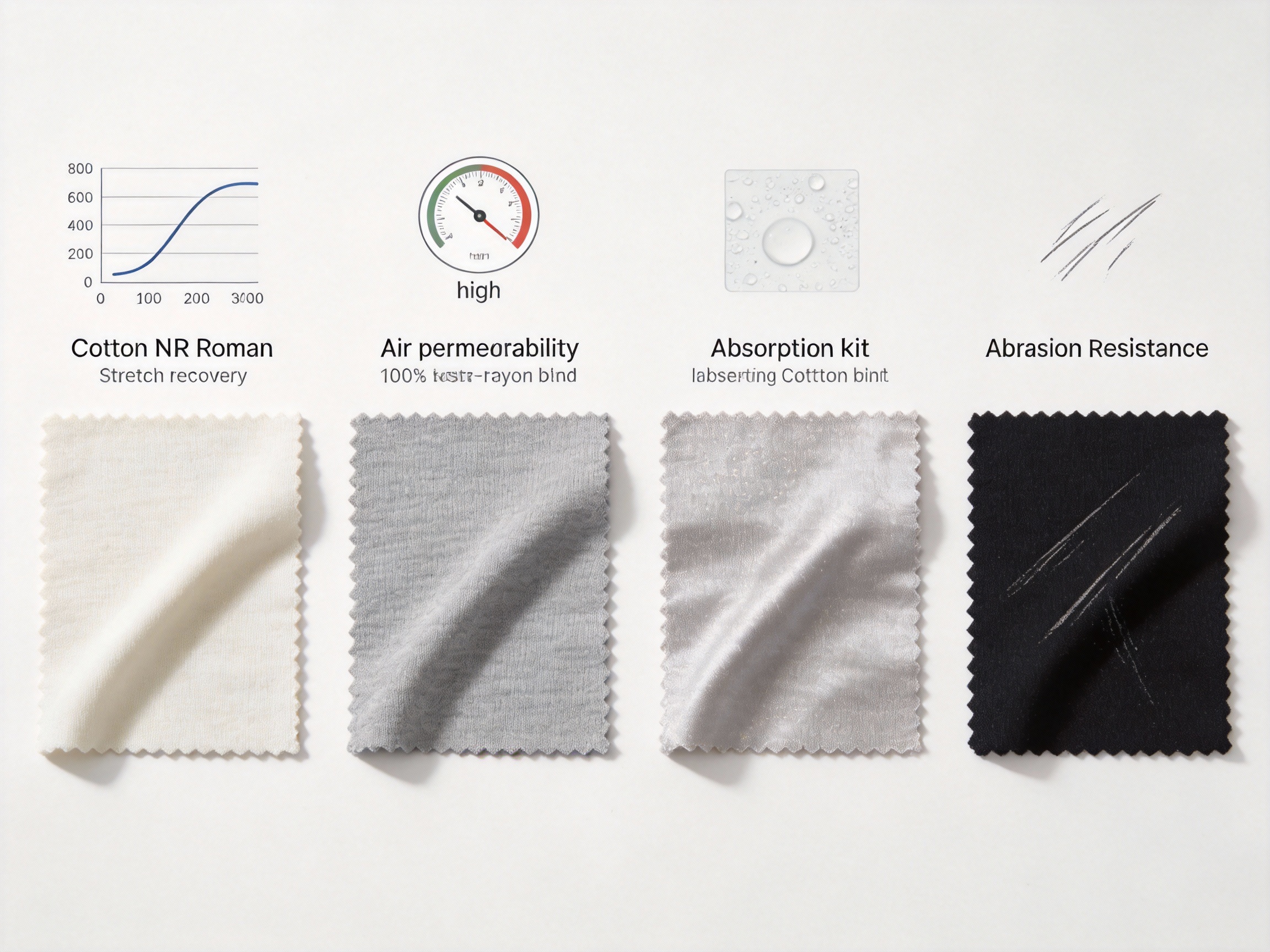 | Property | Cotton NR Roman Fabric | 100% Cotton Knit | Polyester-Rayon Blend | Spandex Knit |