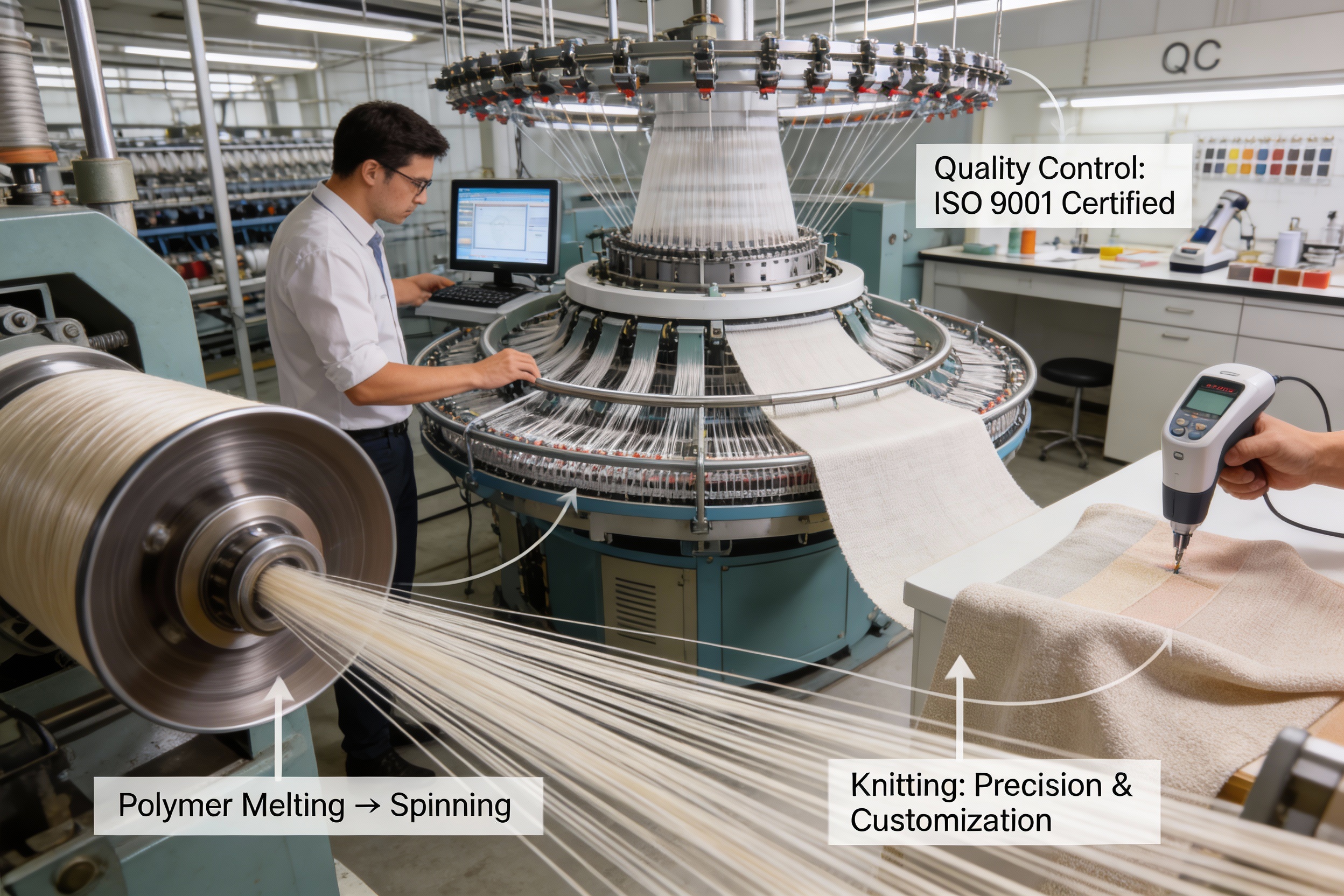 The jacquard knitting process uses digital design software to create intricate patterns. The software sends instructions to the machine, which selects the appropriate yarns to create the desired design. This allows for customization—for example, a customer can request a specific logo or pattern to be knitted into the fabric. The knitting machines are also equipped with sensors to detect defects (like broken yarns) and stop production immediately, ensuring that only high-quality fabric is produced.