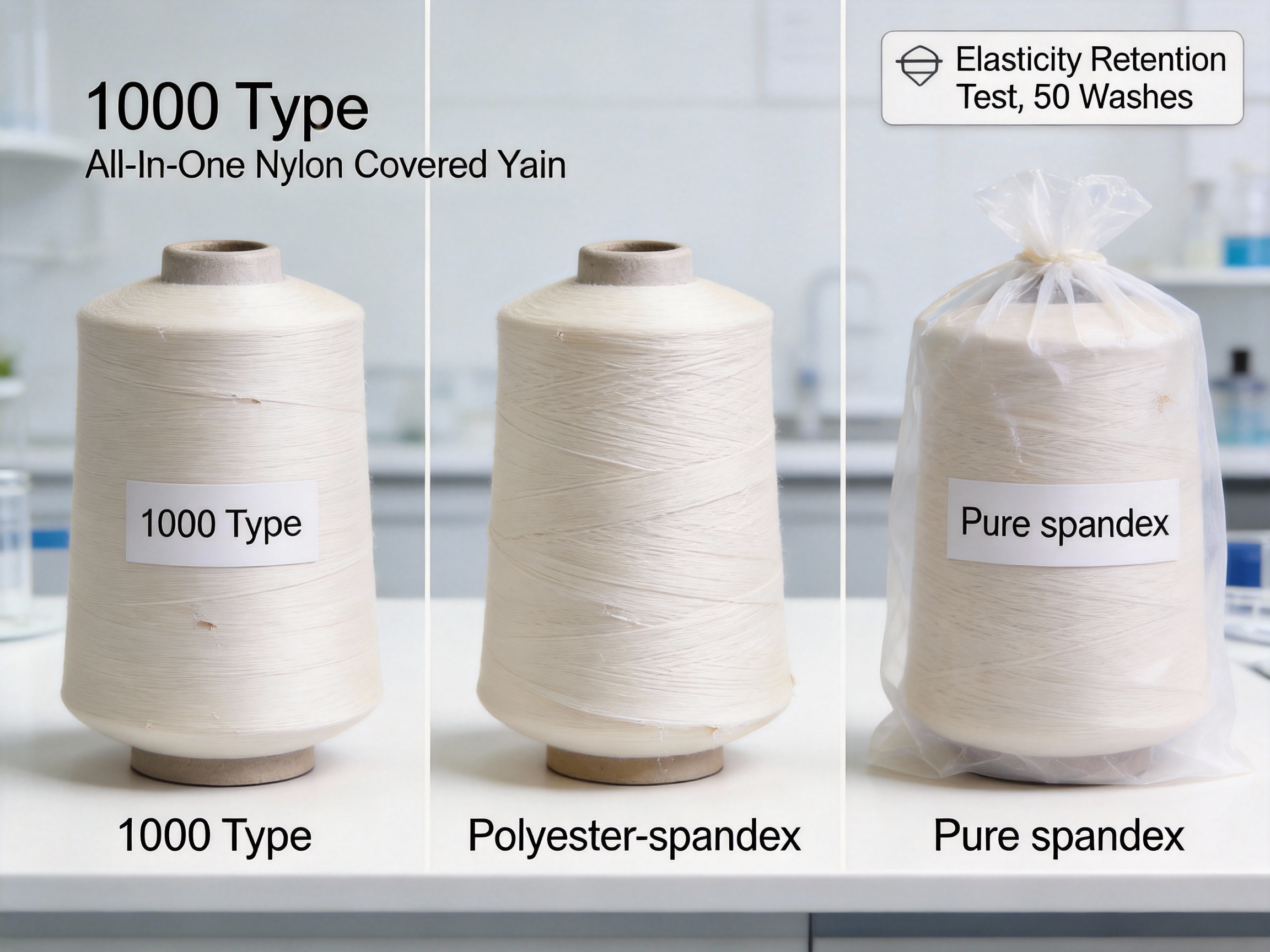 A2: The 1000 Type yarn retains 95% of its original elasticity after 50 washes, while polyester-spandex covered yarn retains only 88%. This superior elasticity retention is due to the uniform nylon sheath and high-tenacity spandex core.