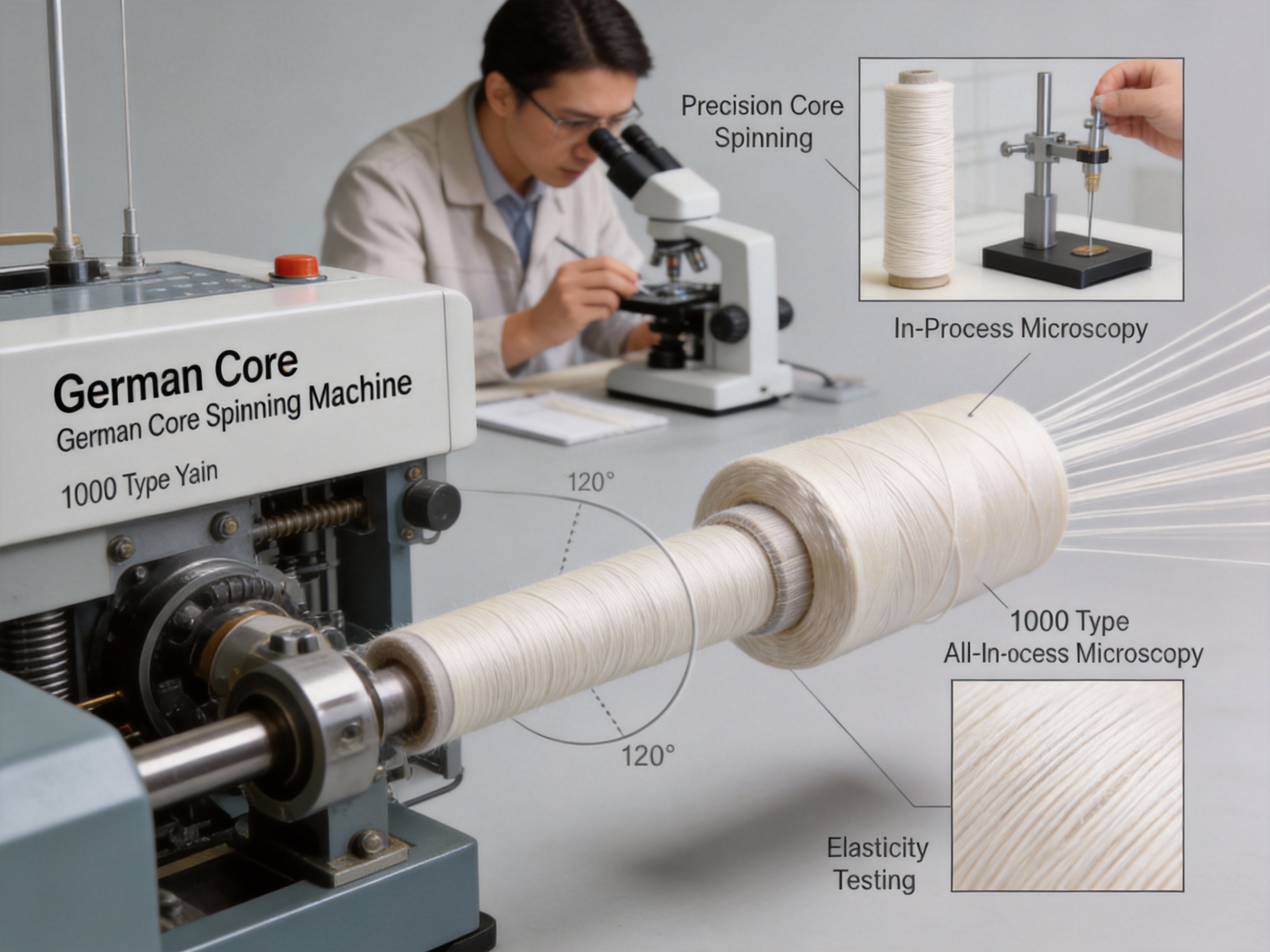 Another key feature of the core spinning process is the use of high-tenacity spandex core. The spandex used in the 1000 Type has a stretch ratio of 400%—higher than the 350% used in standard nylon-covered yarns. This higher stretch ratio allows the yarn to accommodate a wider range of motion without losing its shape. The spandex core is also pre-treated with a lubricant to reduce friction during spinning, which prevents damage to the fibers and ensures a smooth sheath.