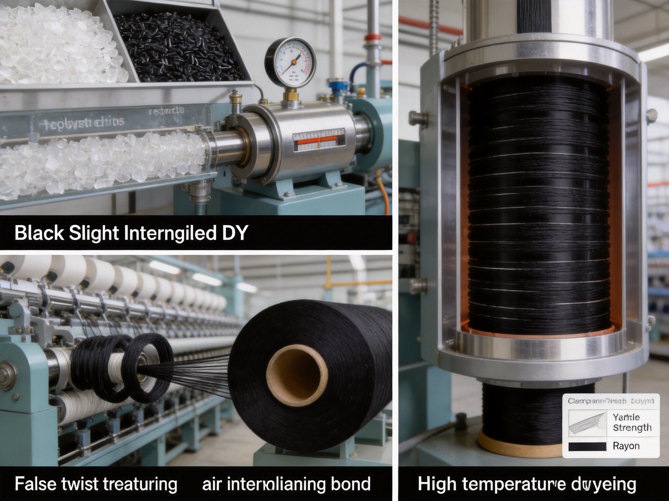 The superior performance of Black Slight Intermingled DTY is a direct result of advanced manufacturing processes that prioritize precision, consistency, and sustainability. These processes are designed to control every stage of production, from raw material selection to final quality testing.