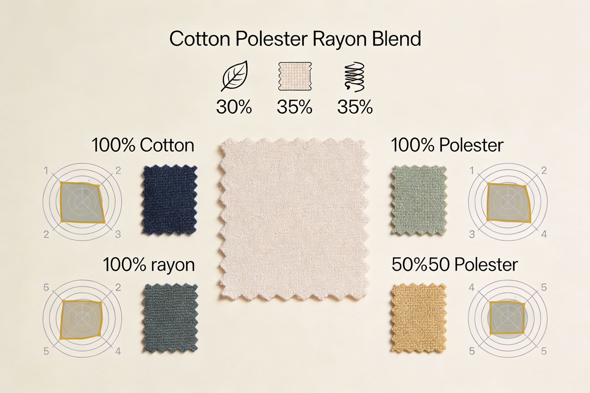 To understand why Cotton Polyester Rayon Printing Fabric is a preferred choice, it is essential to compare it to common alternative fabrics. The table below summarizes its performance relative to five popular textile types: