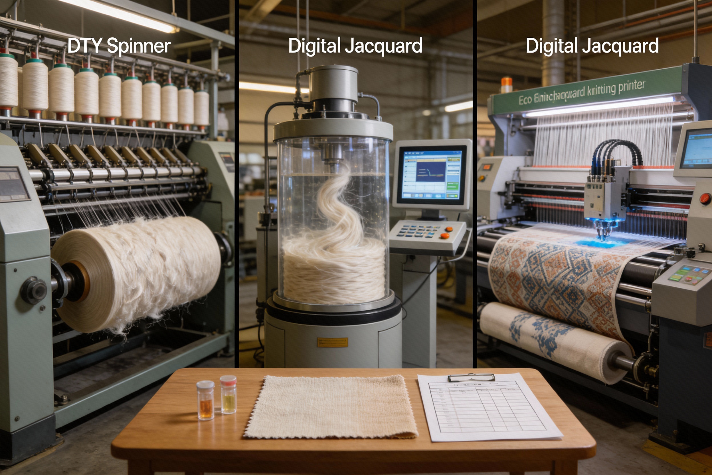 A key competitive advantage is the company’s in-house production of Draw Textured Yarn (DTY) polyester. DTY is a type of polyester yarn that is processed by stretching (drawing) and crimping (texturing) to enhance elasticity and bulk. The company’s DTY production line uses state-of-the-art machinery that controls every aspect of the process: from melting polyester chips to spinning, drawing, and texturing the yarn. This in-house capability ensures consistent yarn quality, reduces lead times, and allows for custom yarn properties (e.g., varying crimp levels for different elasticity requirements).