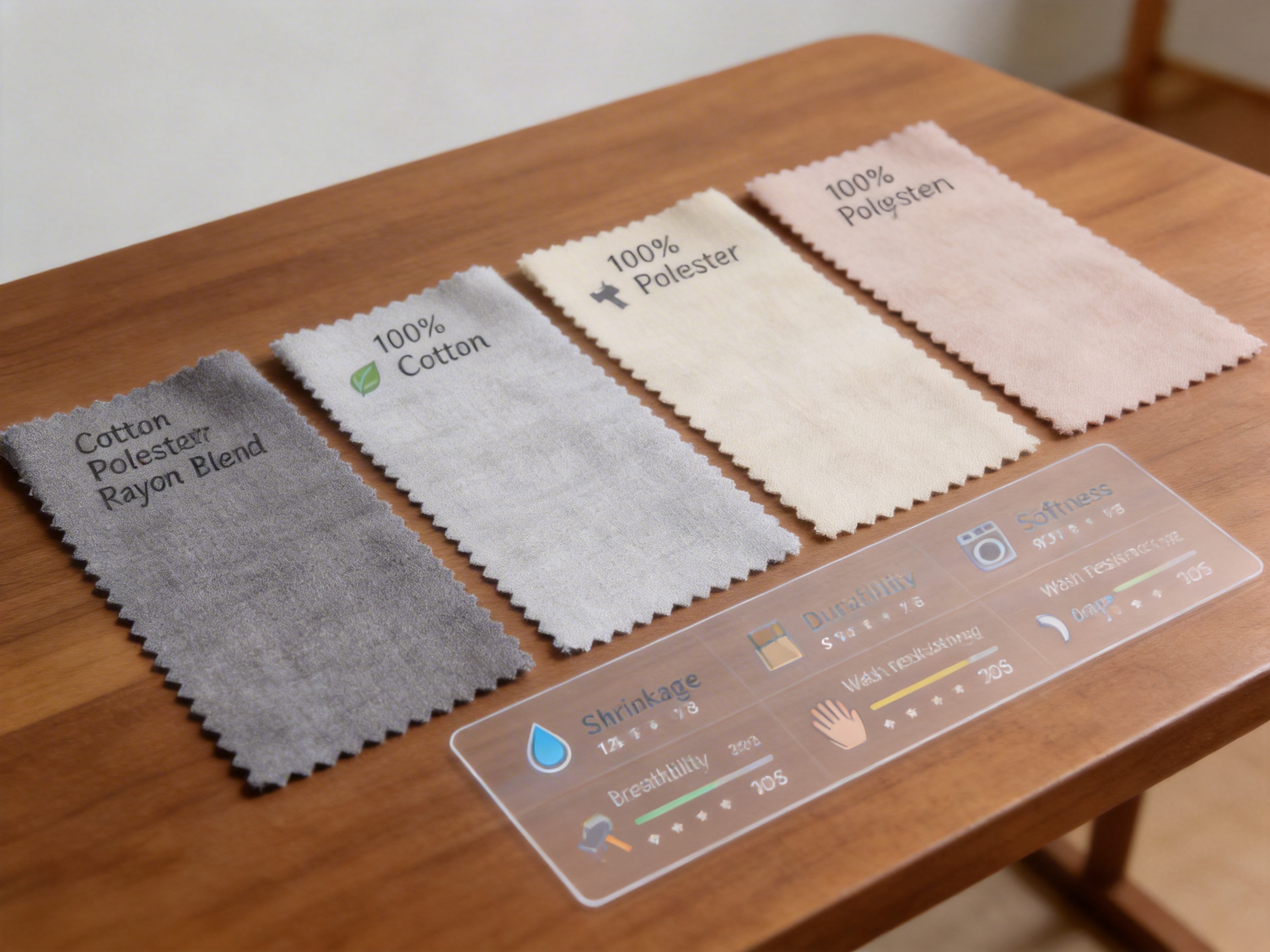 | Fabric Type | Shrinkage (After 10 Washes) | Breathability (1-5 Scale) | Durability (1-5 Scale) | Softness (1-5 Scale) | Wash Resistance (1-5 Scale) | Drape (1-5 Scale) |