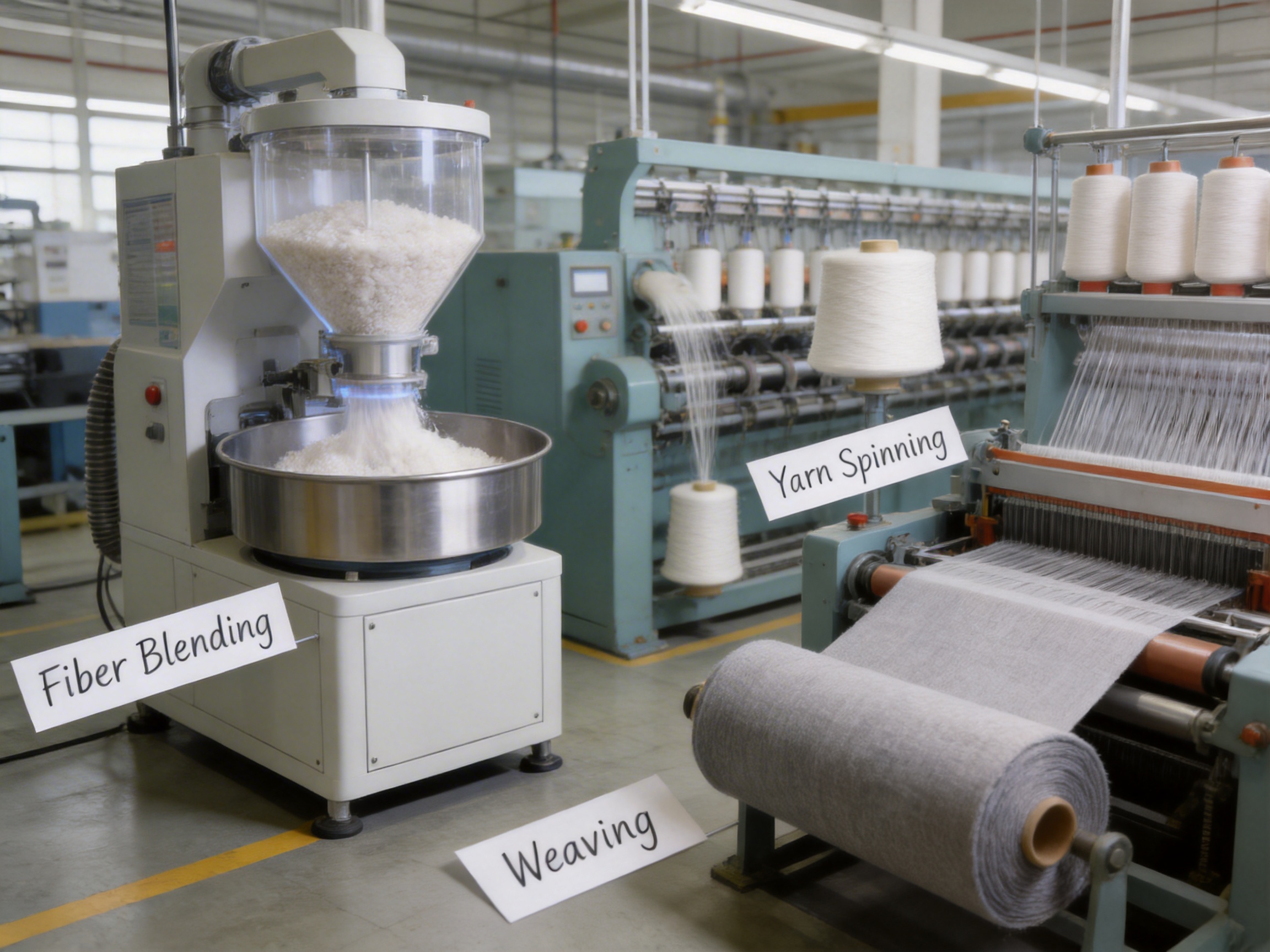 Once selected, the fibers undergo preparation: - Carding: Fibers are fed into carding machines that separate individual fibers, remove impurities (like dirt or short fibers), and align them into a thin web. This step ensures that the fibers are uniform and ready for blending. - Drawing: The carded web is drawn through a series of rollers to further align the fibers and reduce their thickness. This step improves the strength and consistency of the final yarn. - Blending: The prepared cotton, DTY polyester, and rayon fibers are blended in precise ratios using automated blending machines. These machines use sensors to monitor the fiber ratio in real time, ensuring that each batch is consistent. For example, a batch intended for business suiting might use a 35% cotton, 40% DTY polyester, and 25% rayon ratio.
