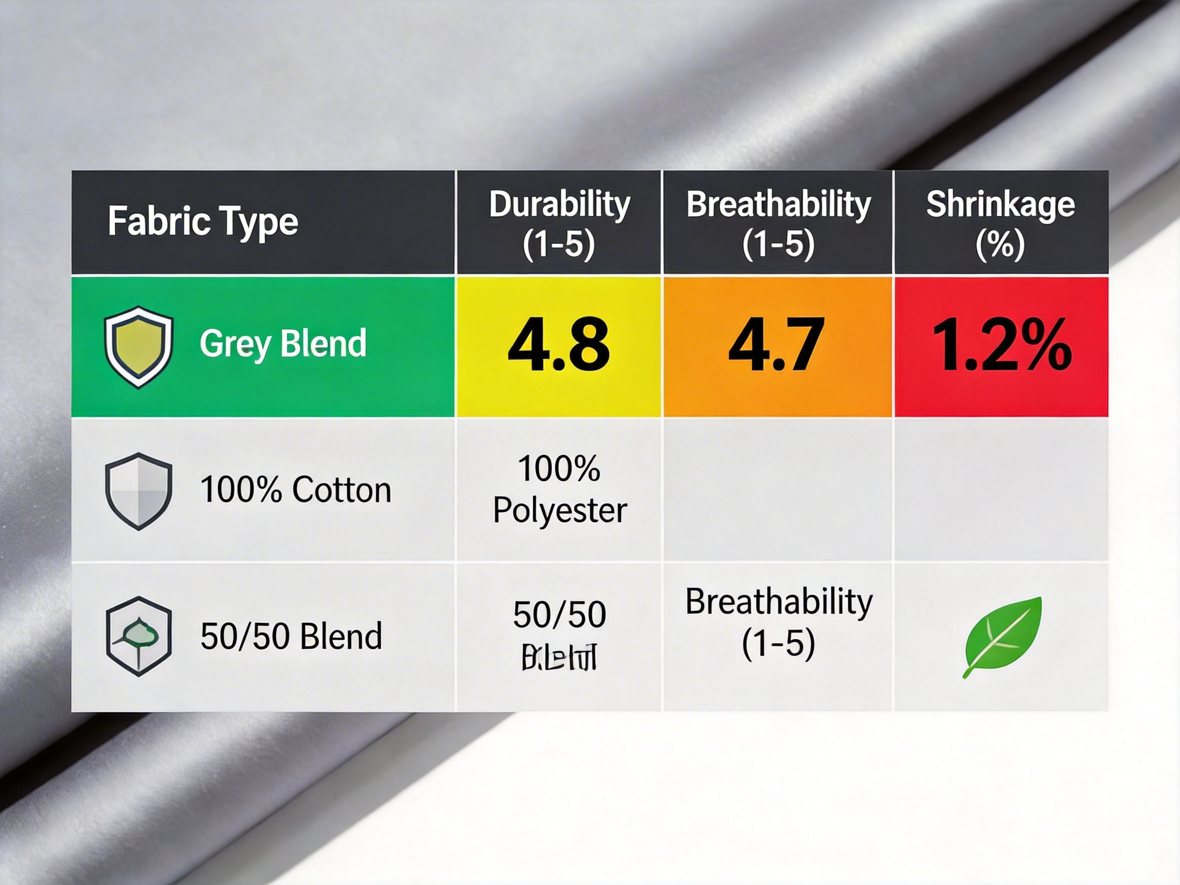 To illustrate the fabric’s value, we have compiled a table comparing it to common alternative fabrics: